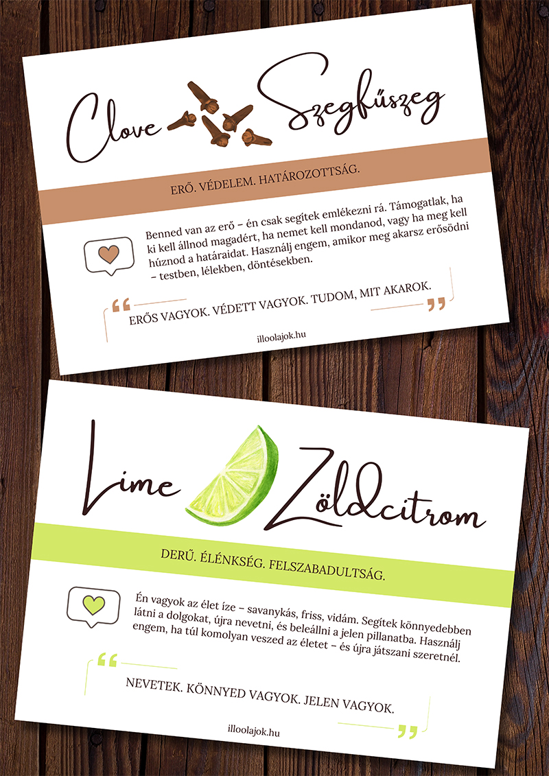Kísérőkártyák illóolajokhoz